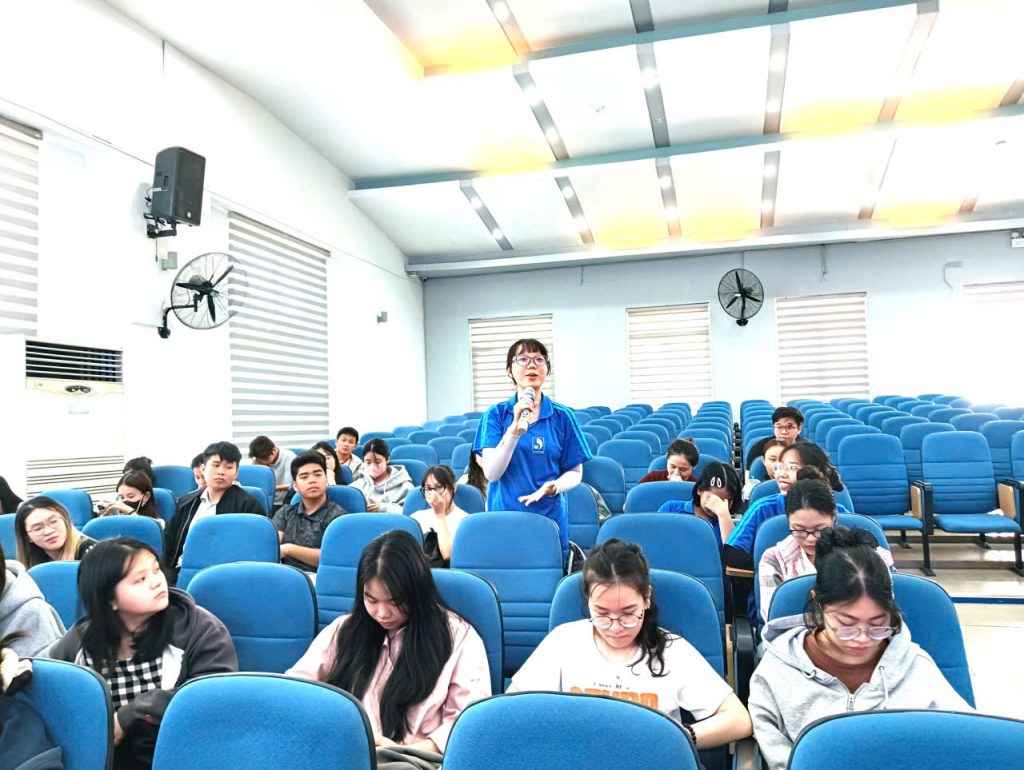 Phần trao đổi – giải đáp diễn ra sôi nổi với nhiều câu hỏi thiết thực xoay quanh quy trình đăng ký, chuẩn bị hành trang, chi phí cũng như các quy định trong quá trình tham gia. Mọi thắc mắc của sinh viên đã được giải đáp rõ ràng, giúp các bạn có sự chuẩn bị tốt hơn và thêm phần tự tin trước hành trình.
